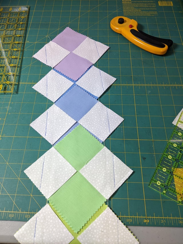 3. Sew the sections together. You can use a traditional or quilt-as-you-go method of stitching the sections together.